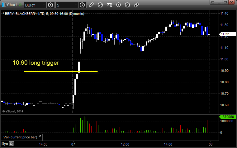 From the report, BBRY triggered long (just barely without market support) and worked great: