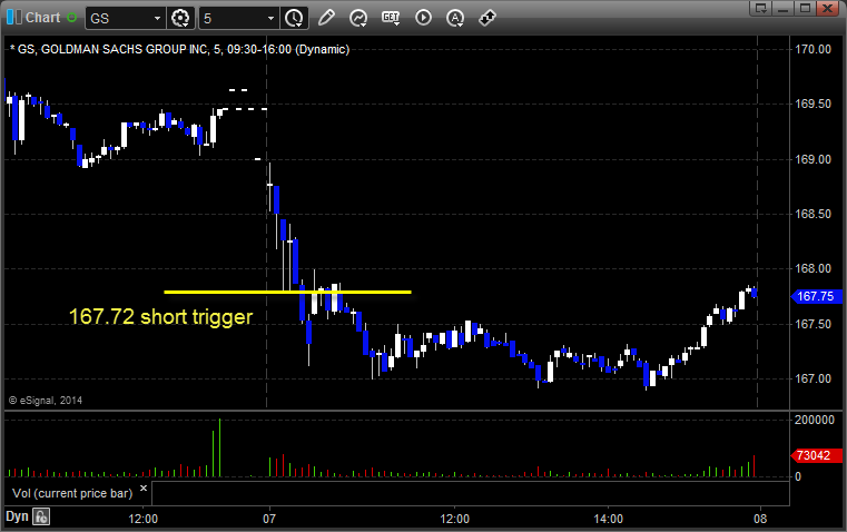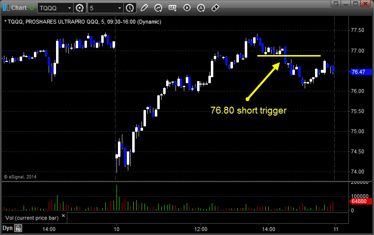 From the Messenger/Tradesight_st Twitter Feed, Rich's FAS triggered short (ETF, so no market support needed) and worked: