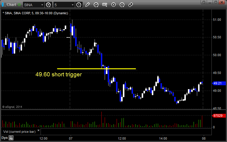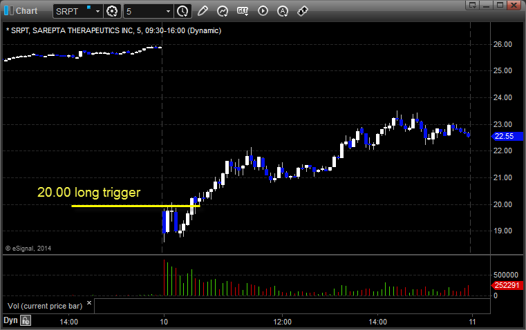 From the report, VPRT, ACXM, and SALE gapped under their short triggers, no plays.