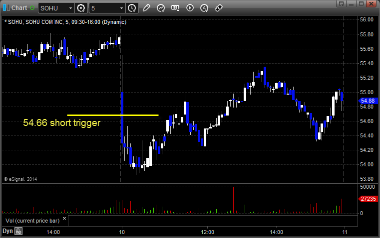 SOHU triggered short (without market support due to opening 5 minutes) and worked: