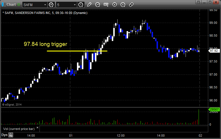 With each stock's recap, we will include a (with market support) or (without market support) tag, designating whether the trade triggered with or without market directional support at the time. Anything in the first five minutes will be considered WITHOUT market support because market direction cannot be determined that early. ETF calls do not require market support, and are thus either winners or losers.