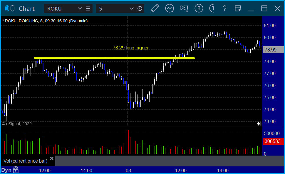 From the Tradesight Plus Twitter feed, Rich's ROKU triggered long (with market support) and worked: