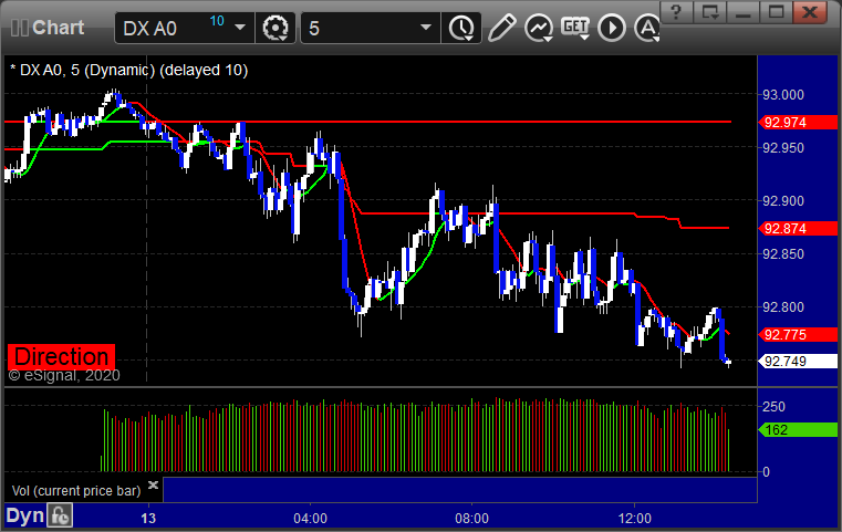 Here's a look at the US Dollar Index intraday with our market directional lines: