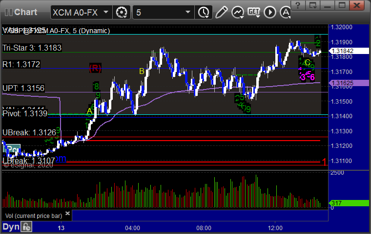 No calls for the session due to an early move in the market and the fact that levels were bunched due to Friday's narrow range.