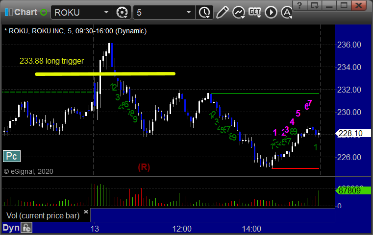 From the Messenger/Tradesight_st Twitter Feed, ROKU triggered long (with market support) and worked enough for a partial: