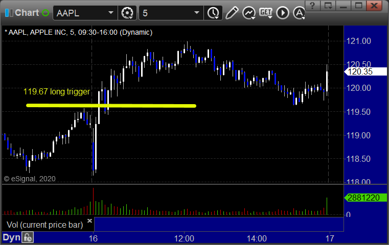 From the Messenger/Tradesight_st Twitter Feed, Rich's AAPL triggered long (with market support) and worked:
