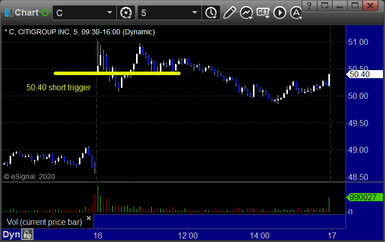 With each stock's recap, we will include a (with market support) or (without market support) tag, designating whether the trade triggered with or without market directional support at the time. Anything in the first five minutes will be considered WITHOUT market support because market direction cannot be determined that early. ETF calls do not require market support, and are thus either winners or losers.