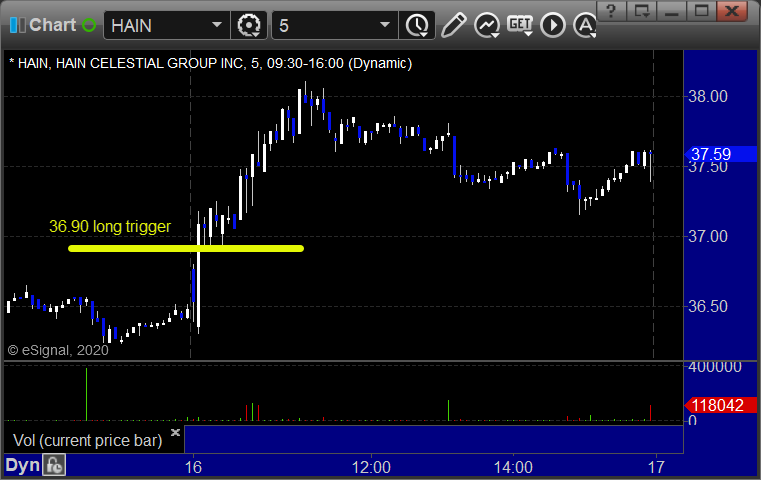 HAIN triggered long (with market support) and worked: