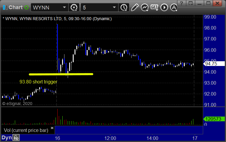 WYNN triggered short (with market support) and didn't work: