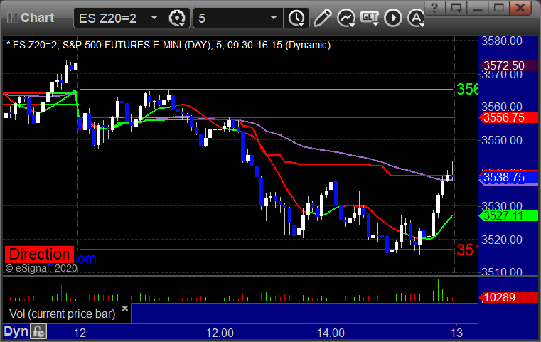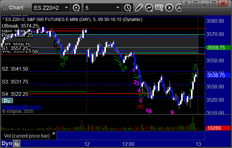 My call triggered short at A at 3549.75, hit first target for 8 ticks, second half stopped over the entry: