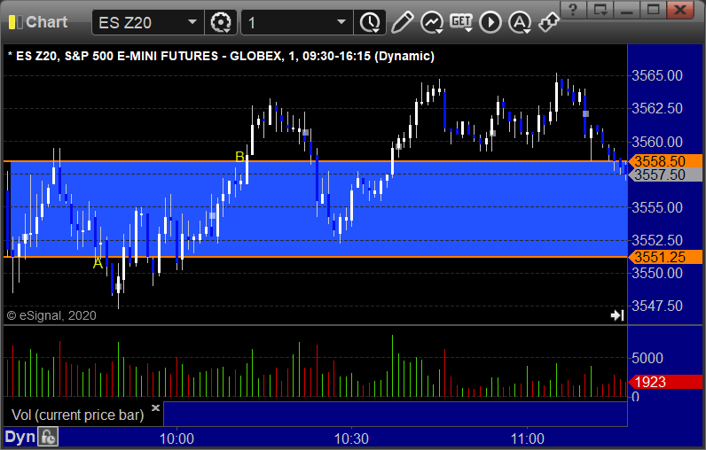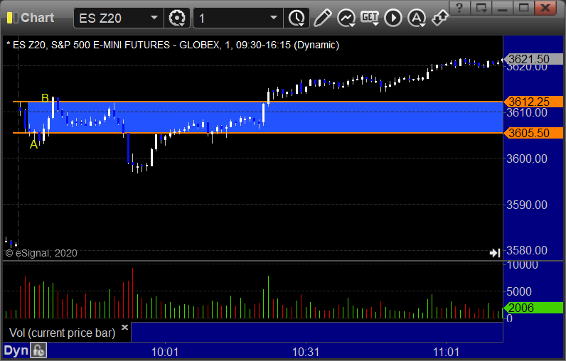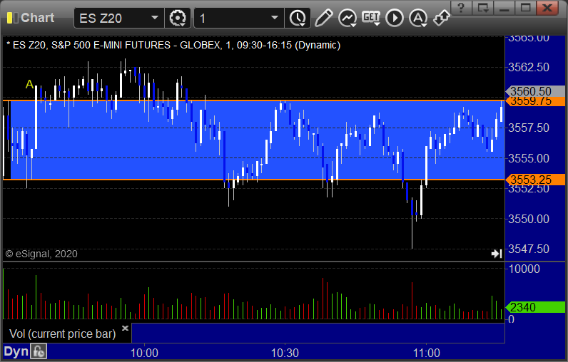 ES Opening Range Play triggered short at A and worked enough for a partial, triggered long at B and worked: