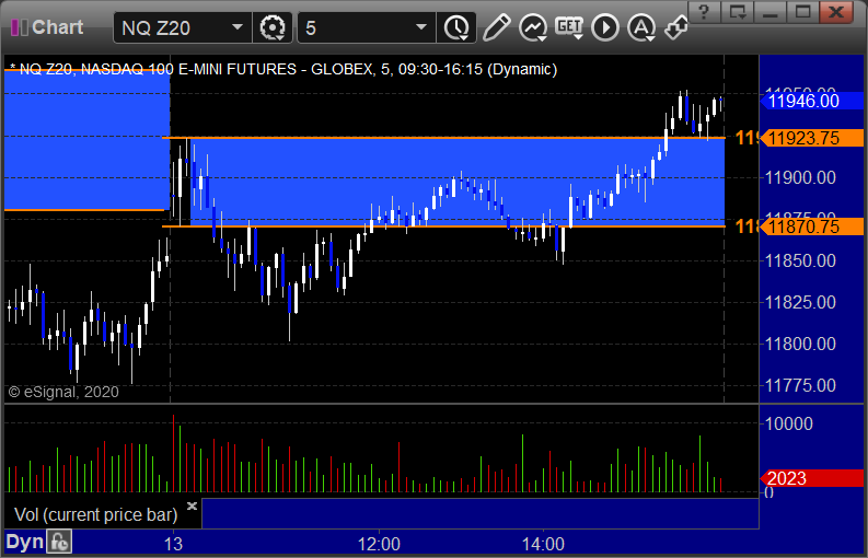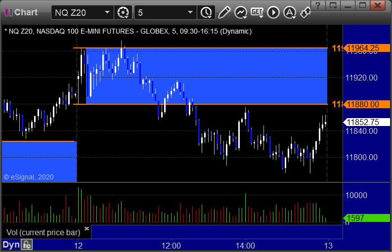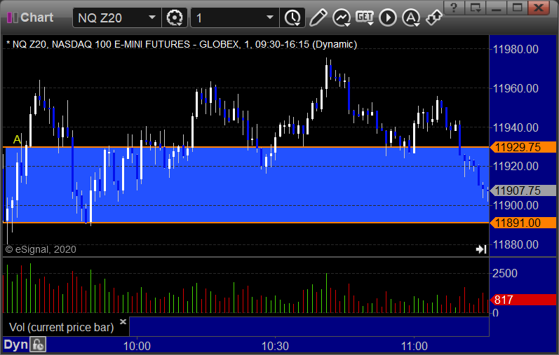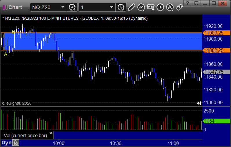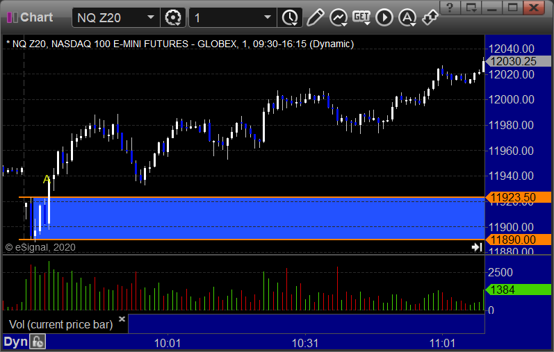 NQ Opening Range Play triggered long at A but too far out of range to take: