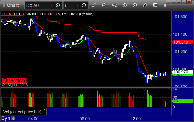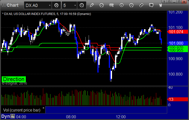 Here's a look at the US Dollar Index intraday with our market directional lines: