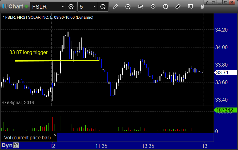 From the Messenger/Tradesight_st Twitter Feed, FSLR triggered long (with market support) and worked: