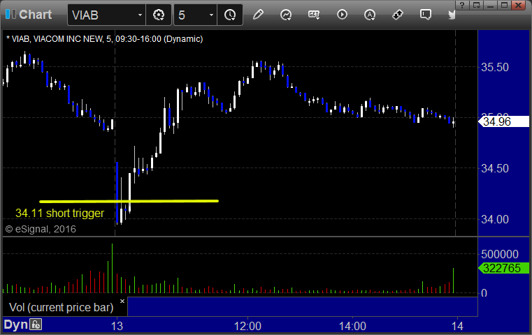 VIAB triggered short (without market support due to opening 5 minutes) and didn't work:
