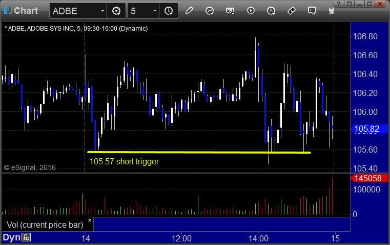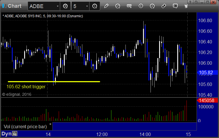 With each stock's recap, we will include a (with market support) or (without market support) tag, designating whether the trade triggered with or without market directional support at the time. Anything in the first five minutes will be considered WITHOUT market support because market direction cannot be determined that early. ETF calls do not require market support, and are thus either winners or losers.