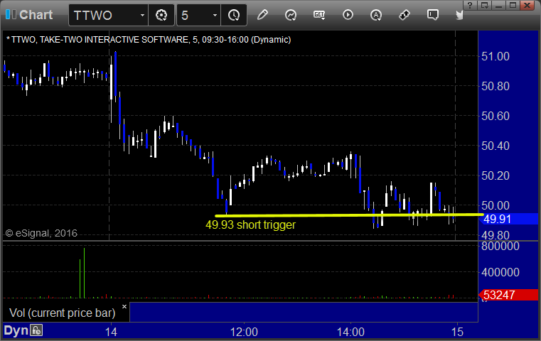 TTWO triggered short (with market support) and also didn't go enough in either direction to count: