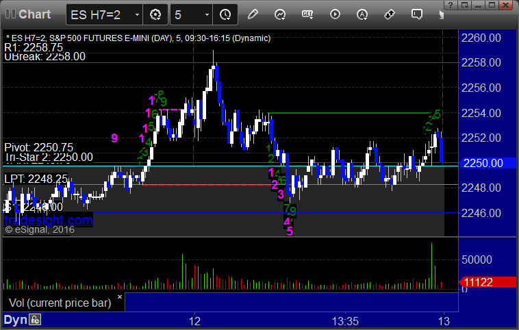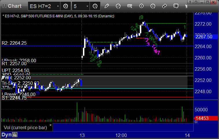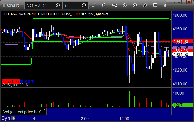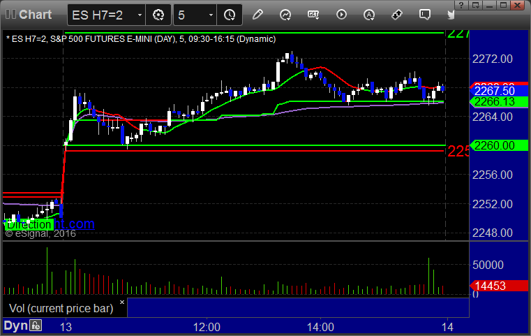 As usual, let's start by taking a look at the ES and NQ with our market directional lines, VWAP, and Comber on the 5-minute chart from today's session: