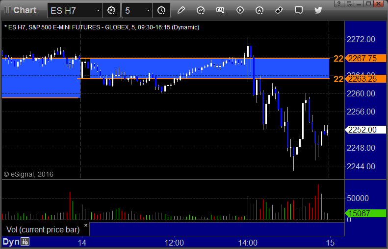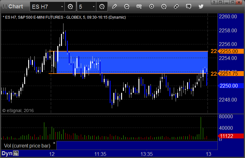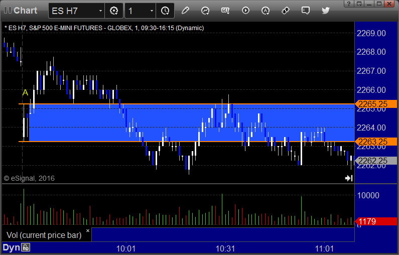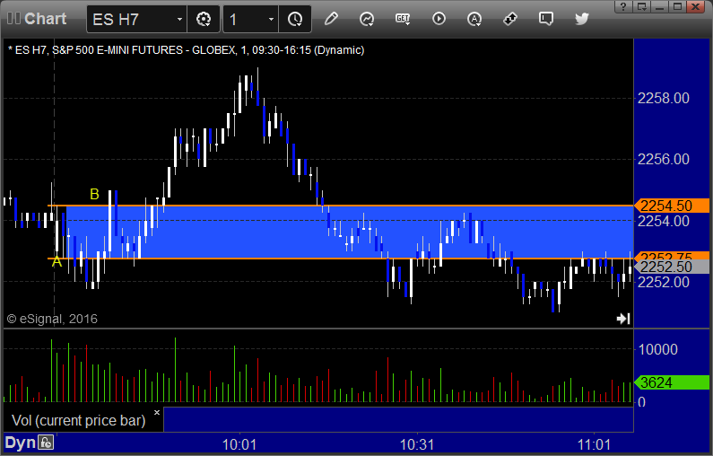ES Opening Range Play triggered short at A and stopped, triggered long at B and stopped: