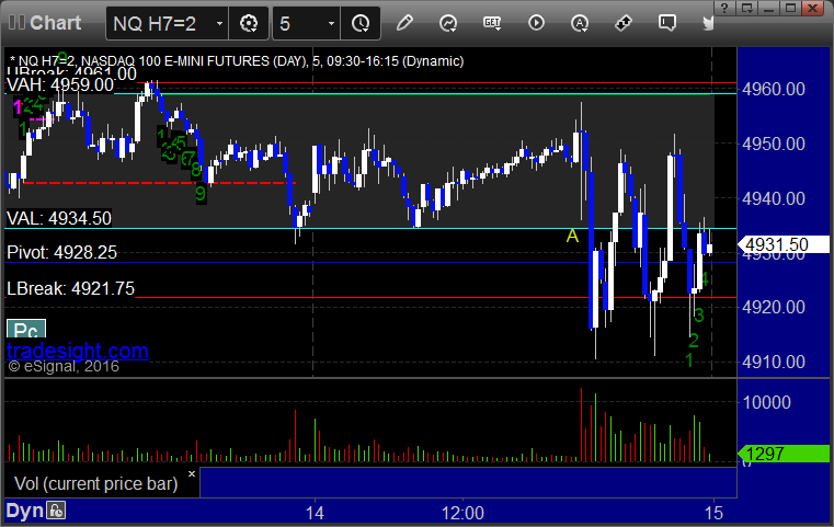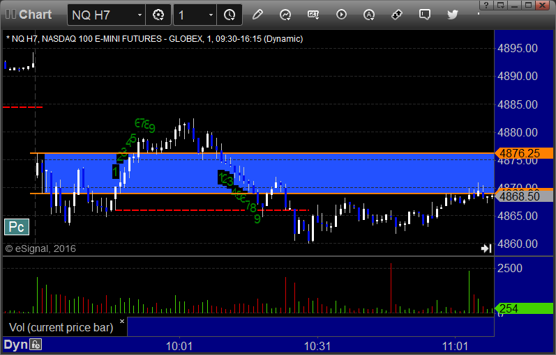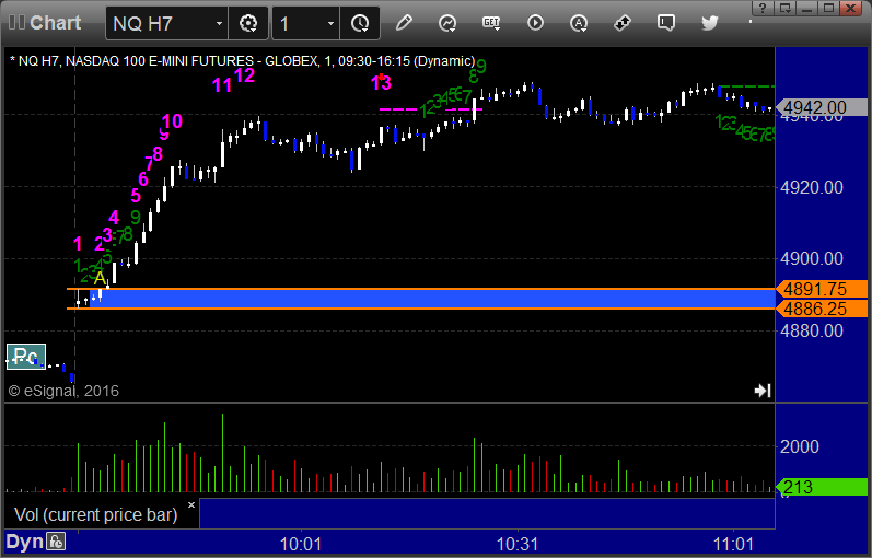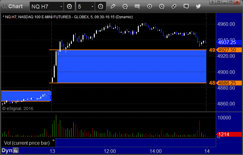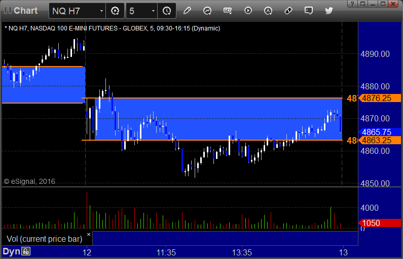 Just a reminder that we use half points for ticks on the NQ and not the quarter point measurement that the exchanges switched to in recent years. This allows us to use 6 ticks as a key target as we do on the other contracts. It also keeps the value of a tick at $10, closer to the value of a tick on the other contracts.
