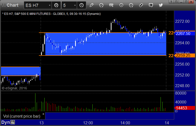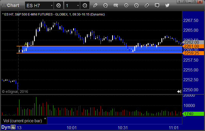 ES Opening Range Play triggered long at A and I closed it for a 4 tick gain after filling the gap: