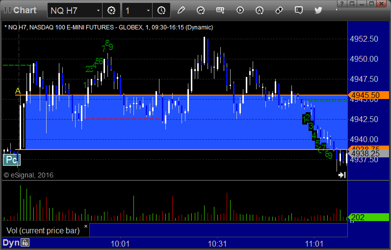 NQ Opening Range Play triggered long at A and worked enough for a partial: