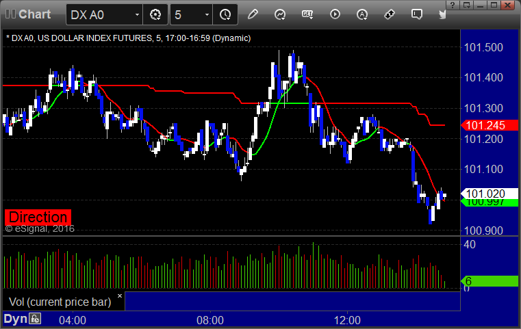 Here's a look at the US Dollar Index intraday with our market directional lines:
