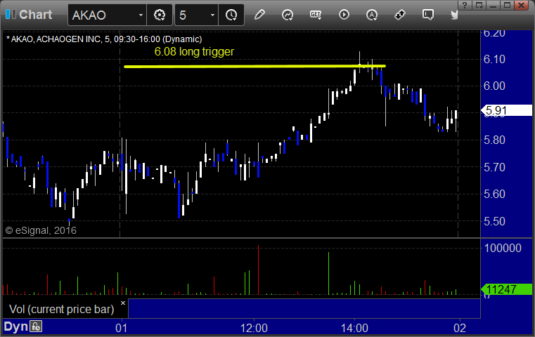 With each stock's recap, we will include a (with market support) or (without market support) tag, designating whether the trade triggered with or without market directional support at the time. Anything in the first five minutes will be considered WITHOUT market support because market direction cannot be determined that early. ETF calls do not require market support, and are thus either winners or losers.