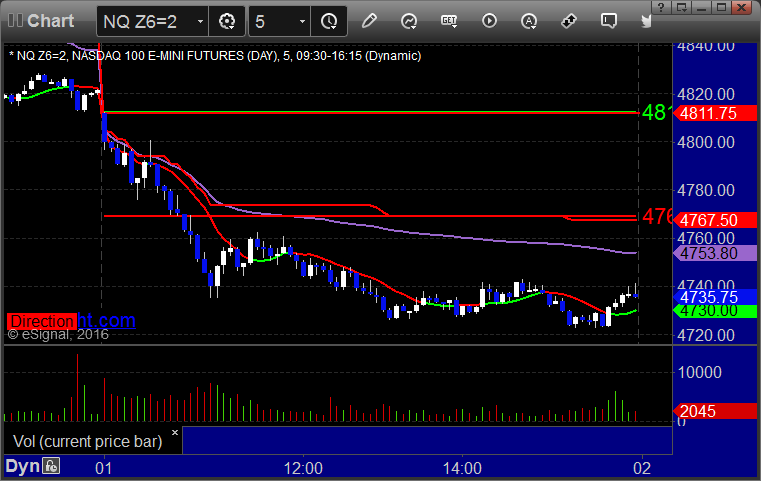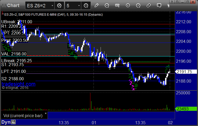 As usual, let's start by taking a look at the ES and NQ with our market directional lines, VWAP, and Comber on the 5-minute chart from today's session: