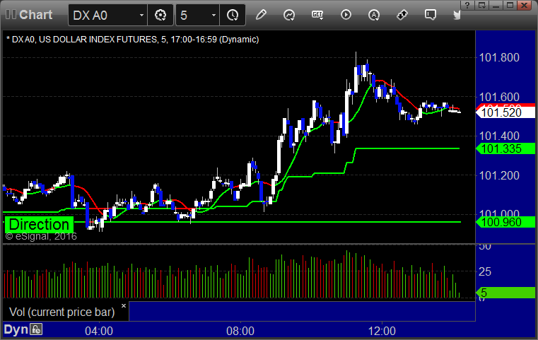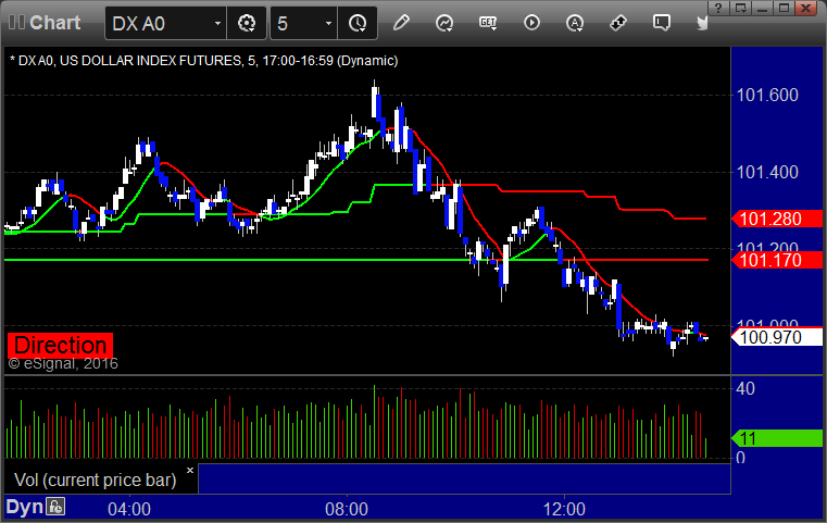 Here's a look at the US Dollar Index intraday with our market directional lines: