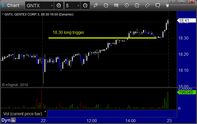 From the report, GNTX triggered long (with market support) and didn't go enough in either direction to count: