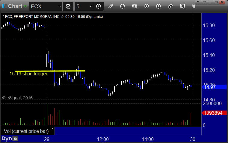 From the Messenger/Tradesight_st Twitter Feed, Rich's FCX triggered short (with market support) and worked: