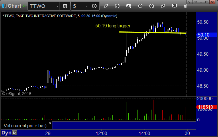 Rich's TTWO triggered long (with market support) and worked enough for a partial: