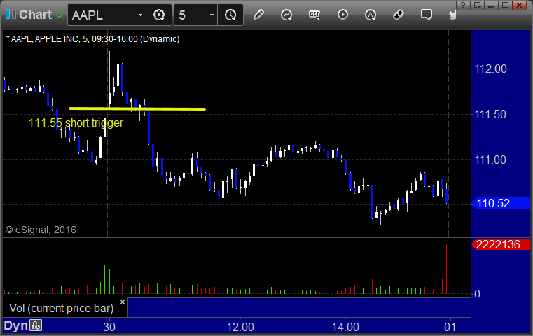 Rich's AAPL triggered short (with market support) and worked: