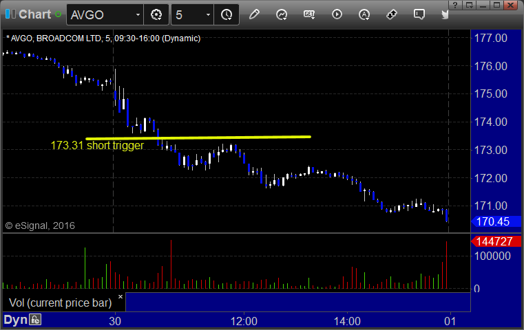 AVGO triggered short (with market support) and worked: