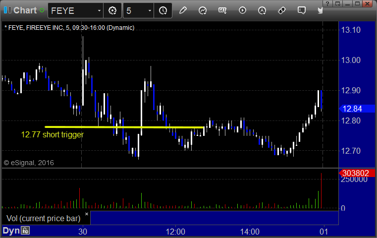His FEYE triggered short (with market support) and didn't go enough in either direction to count: