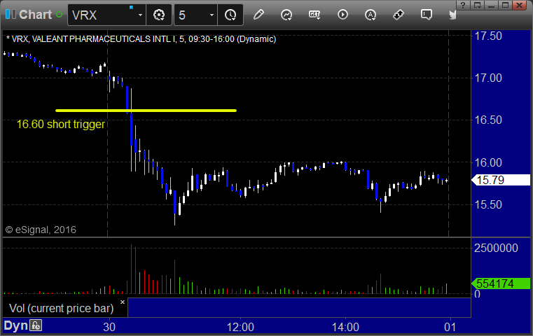 VRX triggered short (with market support) and worked great, spiked down after the entry and kept going: