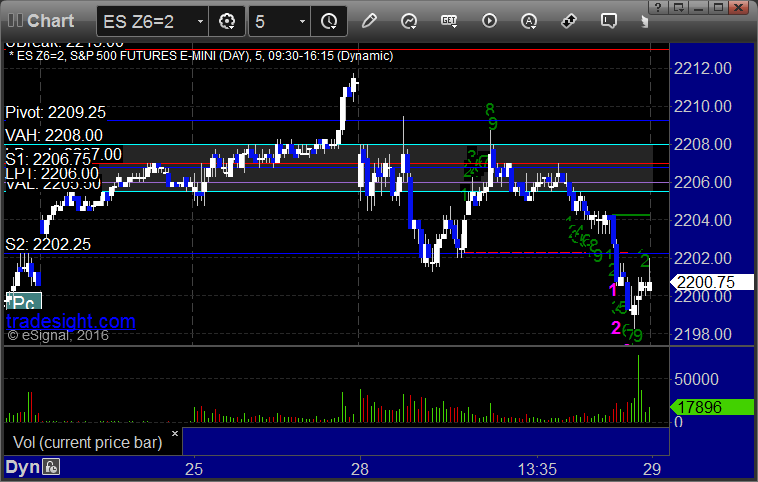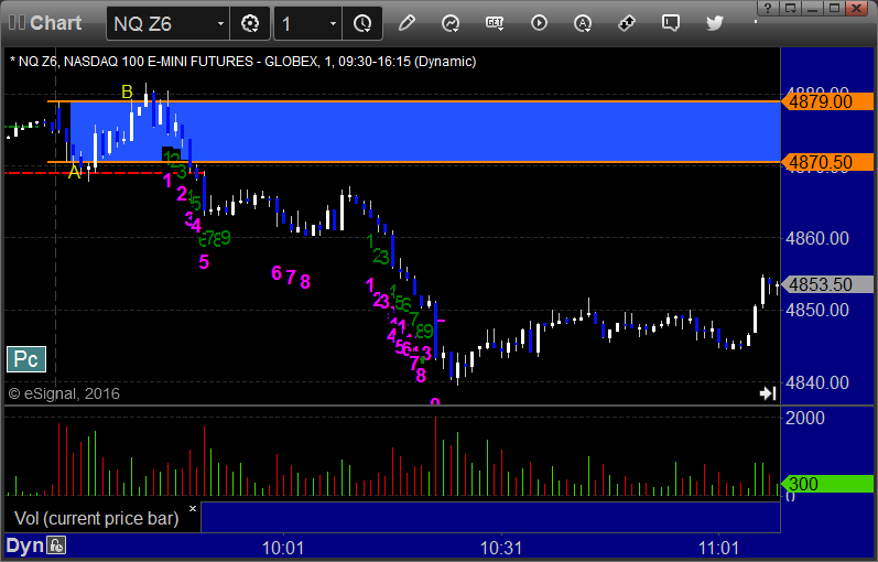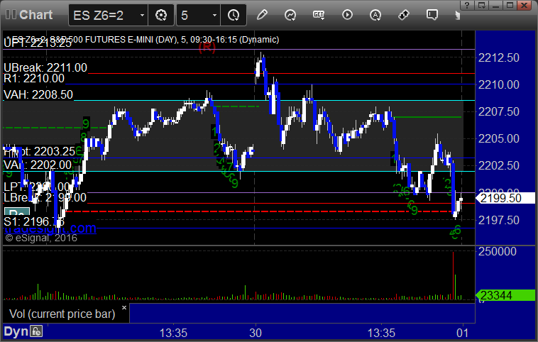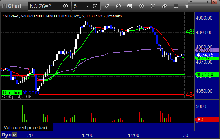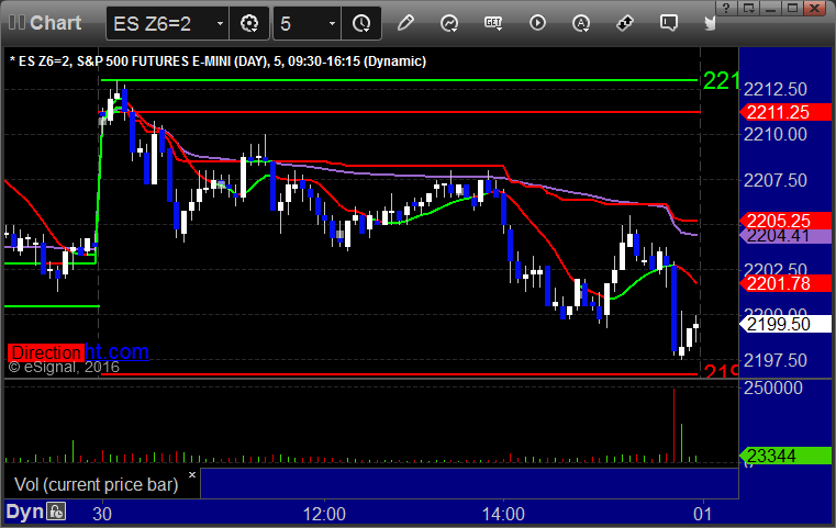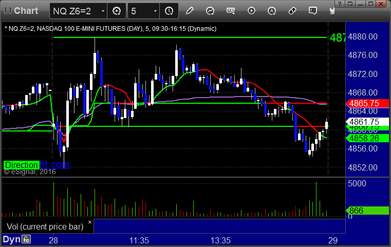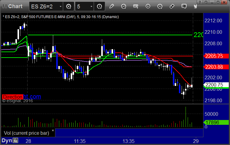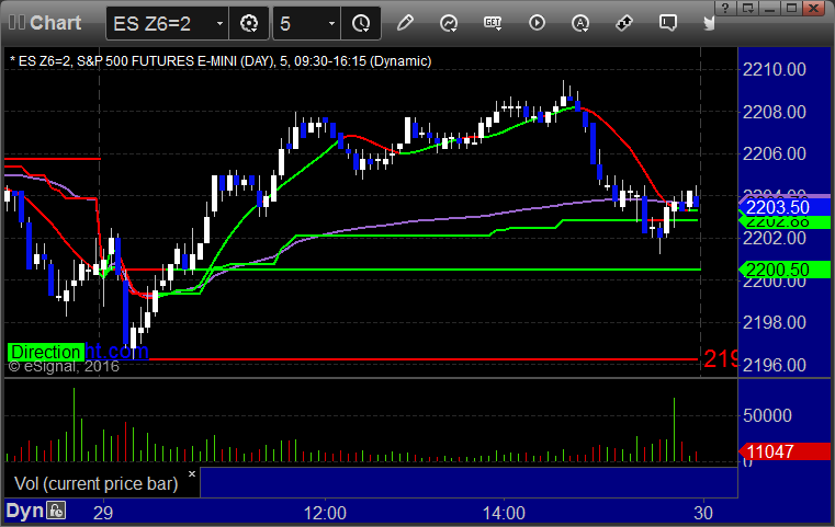 As usual, let's start by taking a look at the ES and NQ with our market directional lines, VWAP, and Comber on the 5-minute chart from today's session: