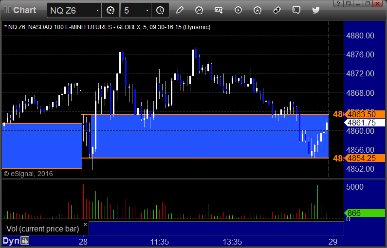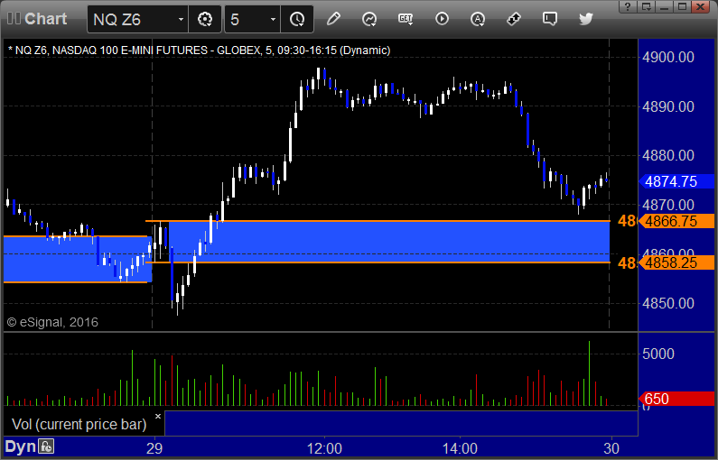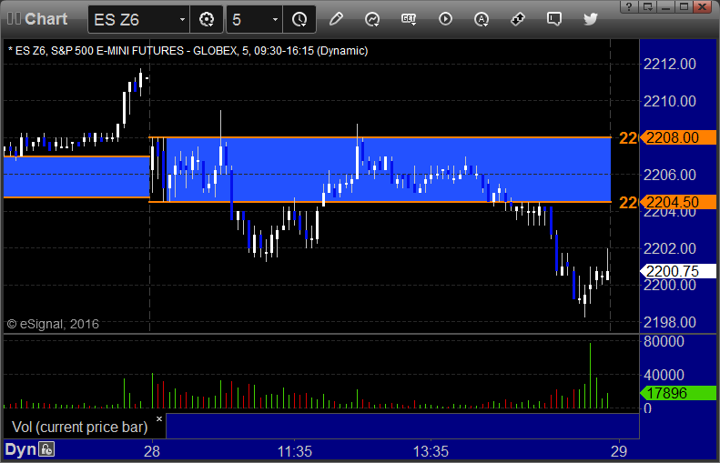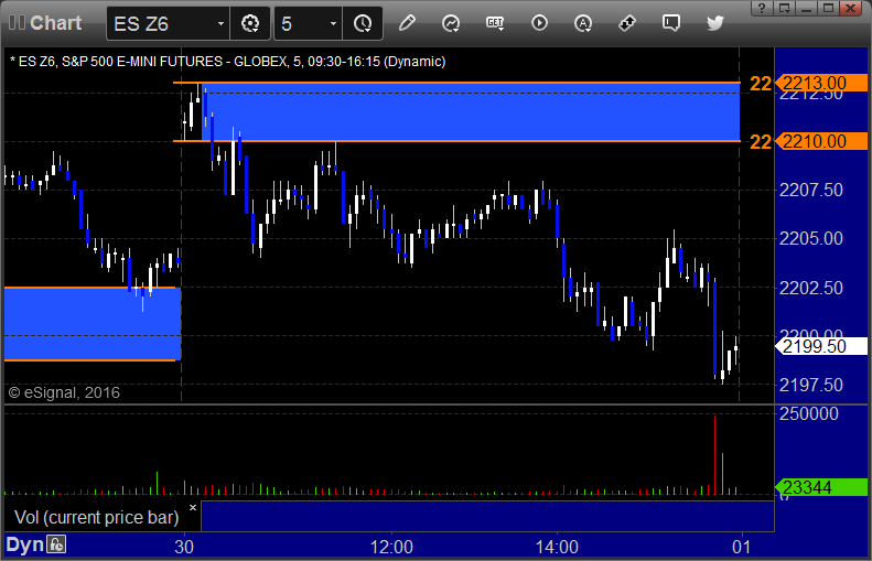 A flat open and some back and forth early action before the markets finally pushed up a little on slightly improved volume of 1.6 billion NASDAQ shares. Mixed results on the Opening Ranges trades plus a profitable ES call.