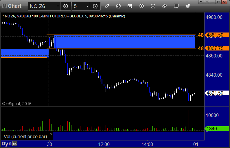 The raw numbers don't show it, but the trade that I said to go big size on in the Lab was the ES OR short, which worked. It lined up with the Value Area and was into the gap, so it was the higher probability trade. The markets gapped up and sold off, closing at lows. Perhaps the turn is finally coming. NASDAQ volume closed at 1.8 billion shares.
