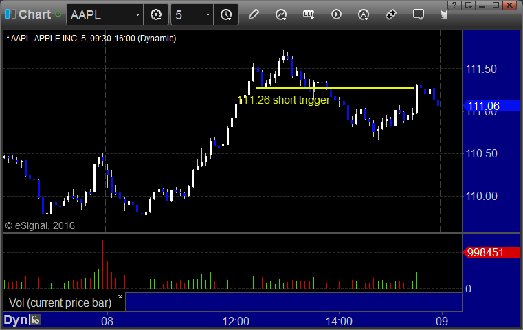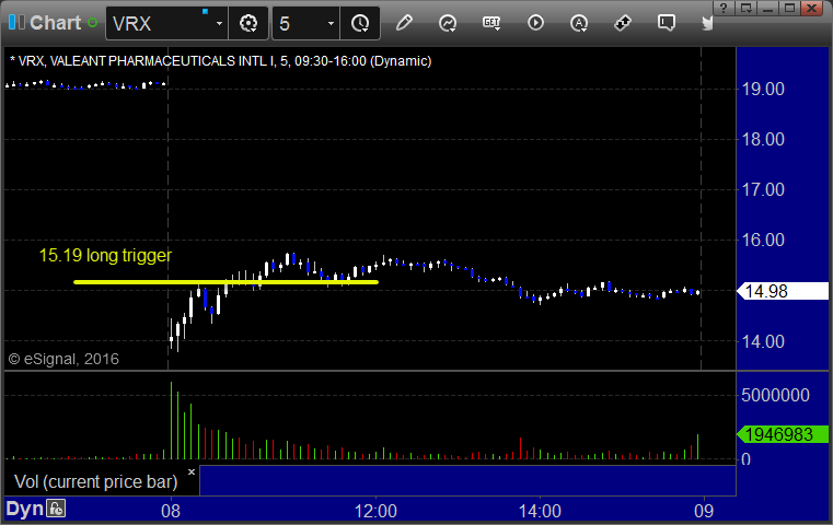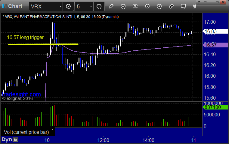 With each stock's recap, we will include a (with market support) or (without market support) tag, designating whether the trade triggered with or without market directional support at the time. Anything in the first five minutes will be considered WITHOUT market support because market direction cannot be determined that early. ETF calls do not require market support, and are thus either winners or losers.