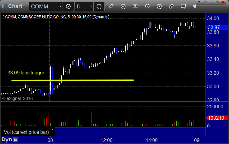 From the report, COMM triggered long (without market support due to opening 5 minutes) and worked: