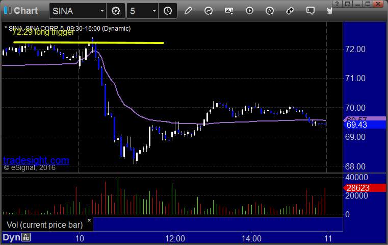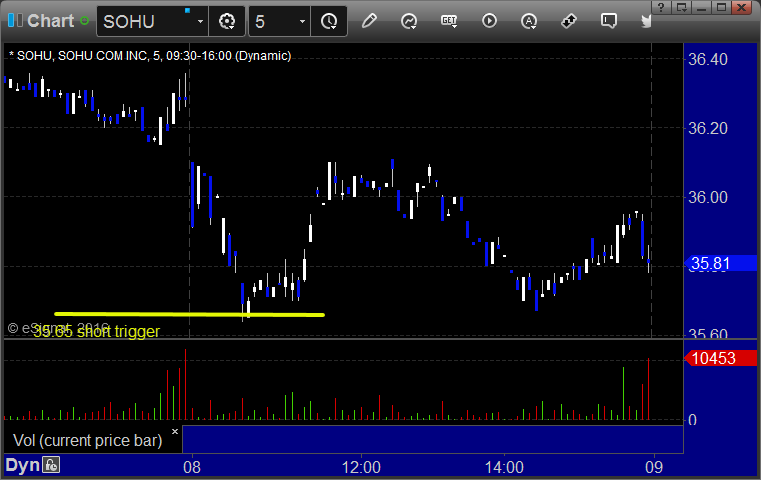 SOHU triggered short (by a penny, without market support) and didn't work: