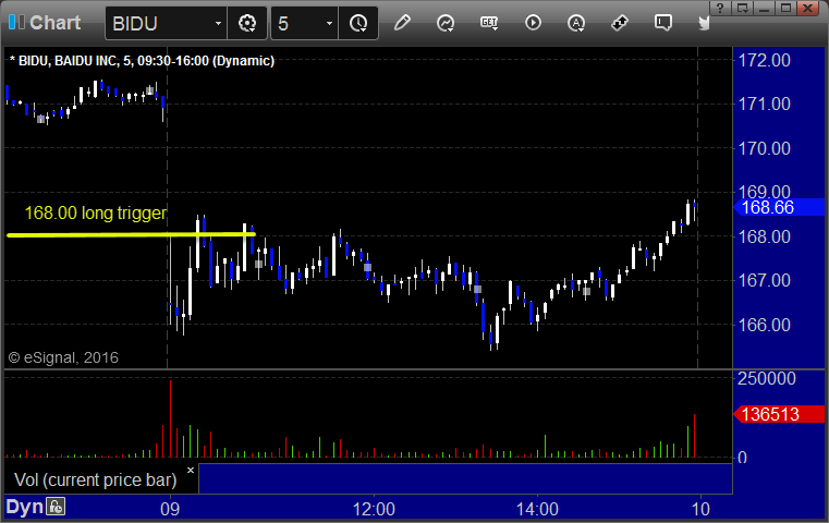 From the Messenger/Tradesight_st Twitter Feed, BIDU triggered long (with market support) and worked enough for a partial: