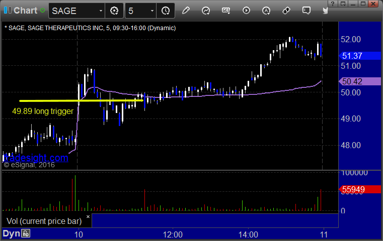 From the report, SAGE triggered long (without market support due to opening 5 minutes) and worked: