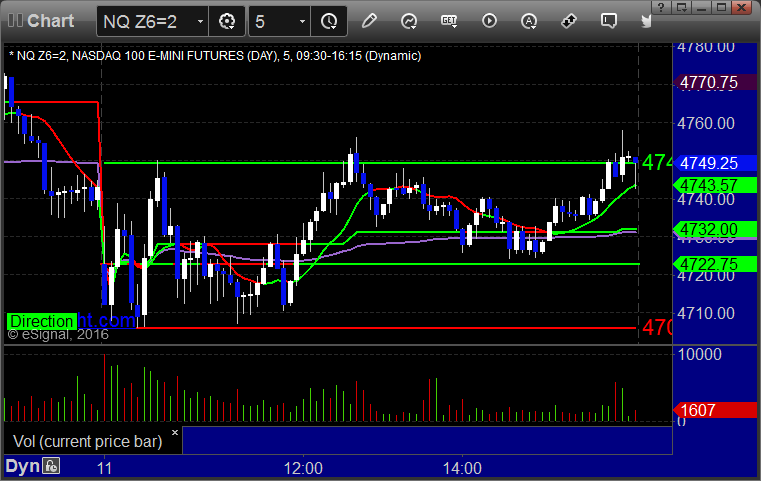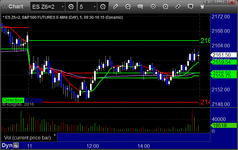 As usual, let's start by taking a look at the ES and NQ with our market directional lines, VWAP, and Comber on the 5-minute chart from today's session: