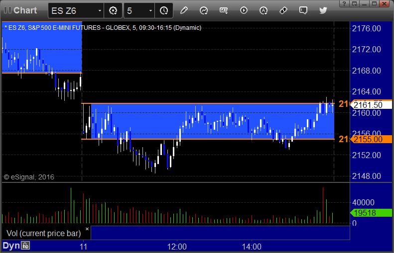 ES Opening Range Play triggered short at A, used the midpoint for the stop as posted: