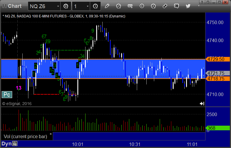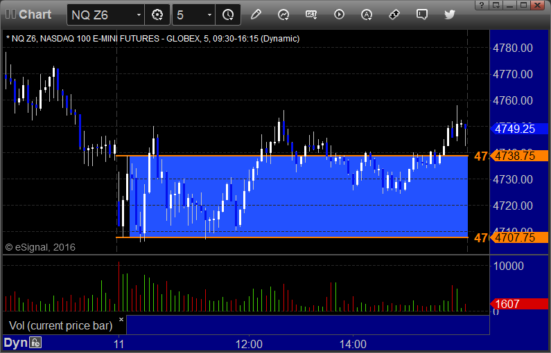 NQ Opening Range Play triggered both ways too far outside the range to take: