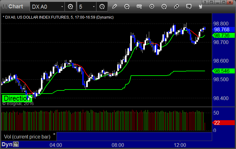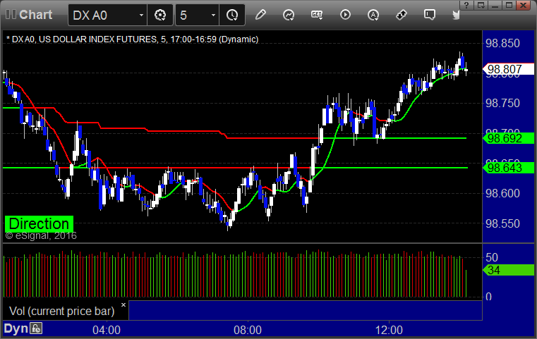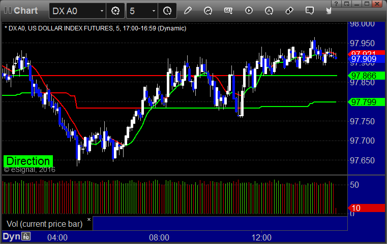 Here's a look at the US Dollar Index intraday with our market directional lines: