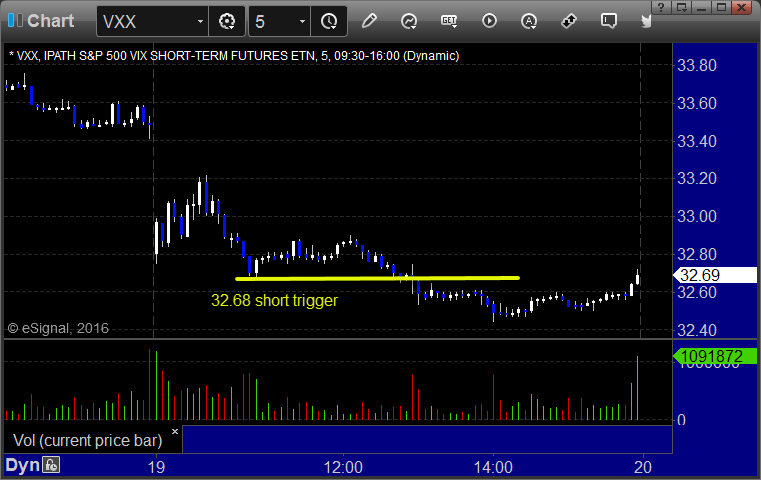 Rich's VXX triggered short (ETF, so no market support needed) and worked enough for a partial:
